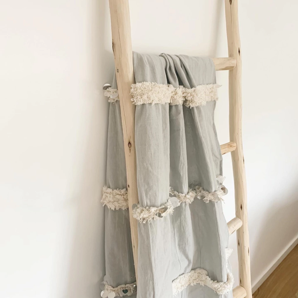 Ideal para colocar al pie de la cama, sobre un sillón o como manta, este textil combina funcionalidad y estilo, brinda una sensación acogedora y relajada, mientras que los flecos y lentejones hechos a mano hacen de cada manta una pieza especial y con carácter propio.